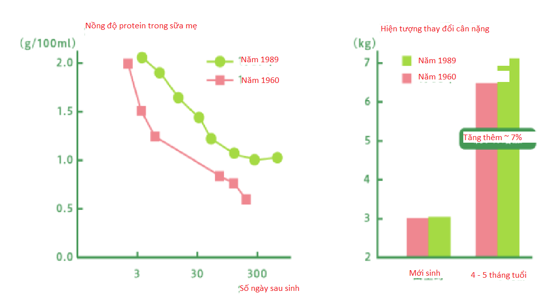 Điều này cho thấy, sự thay đổi trong chế độ ăn của mẹ trong khoảng 30 năm đã ảnh hưởng rất lớn đến sữa mẹ và sự phát triển của trẻ sơ sinh.